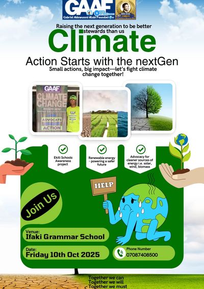 In this second year of GAAF Climate Change Mission 2030, GAAF embarks on a roadshow across 3 States in Federal Republic of Nigeria. School communities in Oyo, Osun & Ondo States would be visited to sensitize the children on Climate Change. At every school visited, GAAF will be planting a tree and installing a recycling bin.